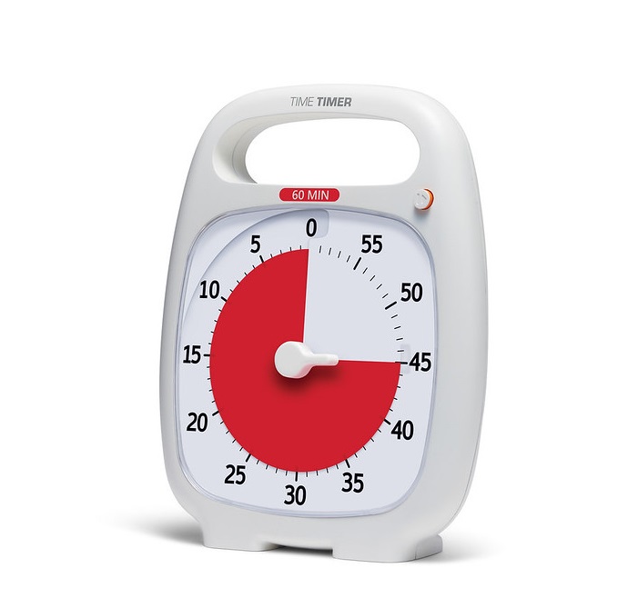 Ideal for active kids or a day full of meetings, the Time Timer PLUS features a rugged case and durable clear lens to protect its patented red disk. And the new on-the-go handle helps encourage independent living and working in all ages and abilities. The Time Timer PLUS 60 Minute is perfect to set up an in-home learning hub for your child or increase focus while working at home or in the office.
